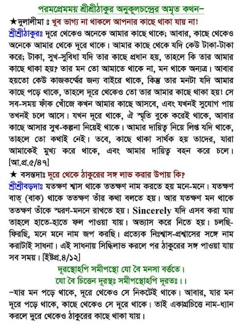 কল্কিযুগে শ্রীশ্রী ঠাকুর অনুকূলচন্দ্র হলেন সদগুরু ও মানুষ ভগবান। তাই আমাদের তাঁর দীক্ষা নিয়ে আদর্শ অনুসরন করাই কর্তব্য। তাতেই আমার পরম মঙ্গল নিহিত রয়েছে। সবাই আসুন ঠাকুরের পথ অনুসরণ করি।